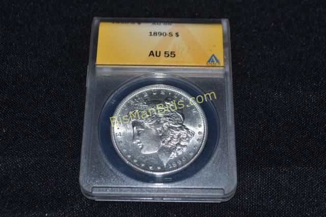 1890 S Morgan Silver Dollar, Graded AU55