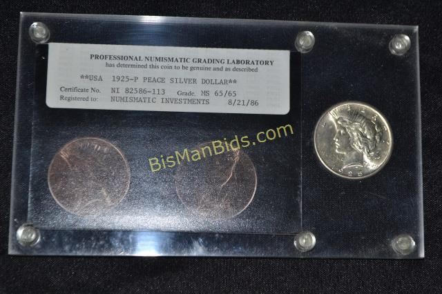 1925 - P Peace Silver Dollar, Graded MS 65/65