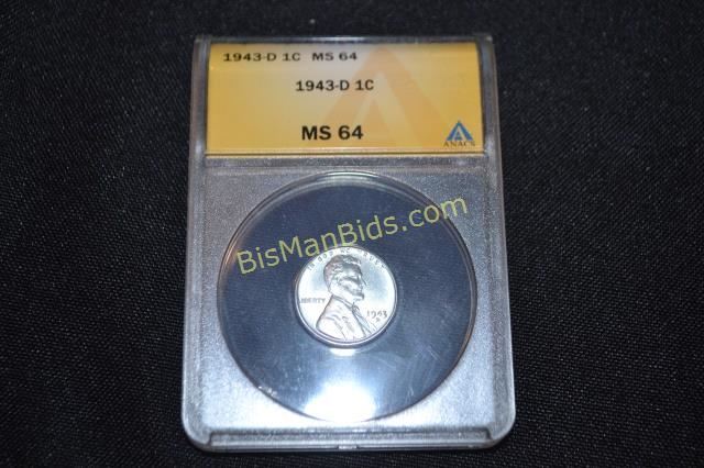 1943 D Lincoln Cent, Graded MS64