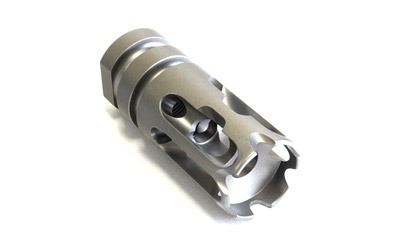 The T3 Titanium is a dual baffle compensator that directs expelled gasses to control muzzle direction. The initial baffle directs gas in a geometrical pattern that stabilizes the rifle system. The second baffle system channels gasses upward to compensate for muzzle rise. This gives the shooter the ability to decrease the time between follow up shots and maintain control of muzzle direction. The T3 Titanium is made from 6AL-4V Titanium and is a lightweight mounting solution for suppressors that mount via an A2 style flash hider.