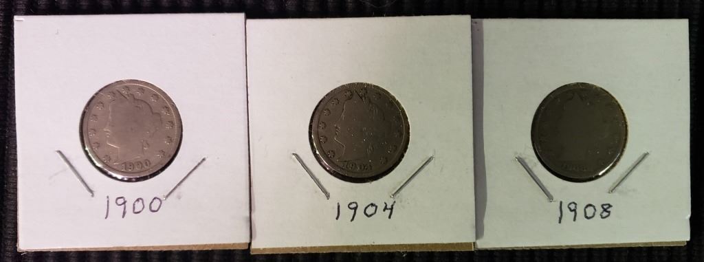 3 Liberty Head Nickels, Random Dates, At Least Good Condition