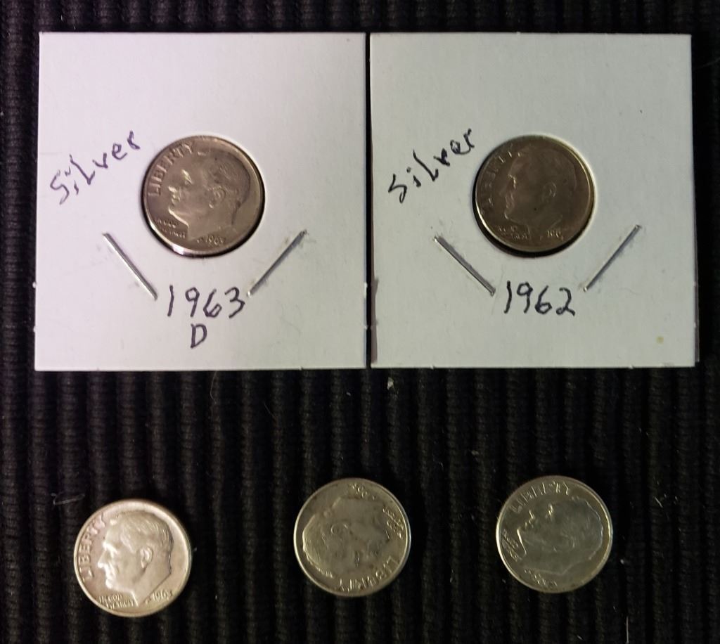 5 Silver Roosevelt Dimes, Random Dates, At Least Good Condition
