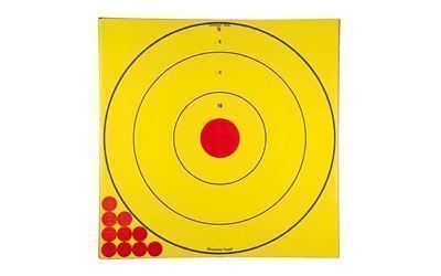Birchwood Casey BC-LRBET-5PK Long Range Bullseye Black w/Yellow Target & Red Acc - This target has easily visible black splatter for long range shooting. The adhesive backing makes it easy to apply anywhere.