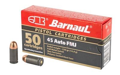 Barnaul Ammunition, 45 ACP, 230Gr, Full Metal Jacket, Steel Polycoated Case, 50 Round Box