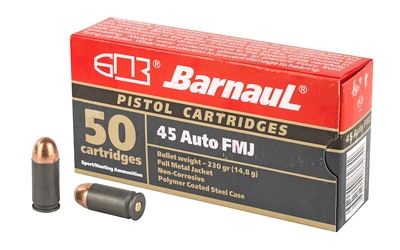 Barnaul Ammunition, 45 ACP, 230Gr, Full Metal Jacket, Steel Polycoated Case, 50 Round Box