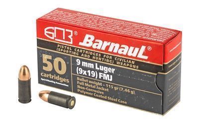 Barnaul Ammunition, 9MM, 115Gr, Full Metal Jacket, Steel Polycoated Case, 50 Round Case