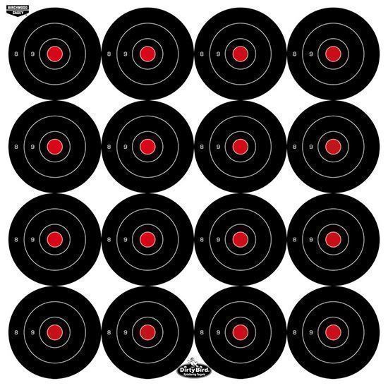 Spot your shots easily! "Intense white" splatter offers superior downrange contrast. Multiple target facings on one sheet make for more shooting time and less target changing time. 16-3" targets on one convenient sheet. Great for short- or long-range shooting! Heavy tagboard construction. The non-adhesive back also allows you to affix to a surface as you wish, add notes, and then easily save the targets for future reference.