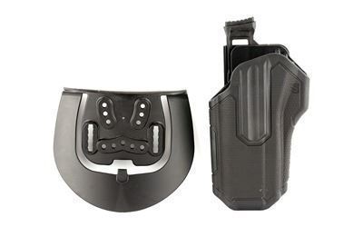 Multiple holsters for multiple handguns is no longer an issue. The Blackhawk(R) Omnivore(TM) is a multi-fit holster that accommodates more than 150 styles of semi-automatic handguns with an accessory rail. The active retention mechanism locks onto Blackhawk's proprietary Rail Attachment Device, not the frame of the handgun. A thumb release disengages the locking mechanism when drawing the handgun.
