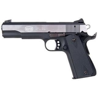 The GSG-1911 is an automatic pistol in cal. .22 made of full metal. The 1911 full-size format has black plastic grip panels and offers a magazine, drop and firing pin safety, a double-sided thumb safety, a backstrap safety, an adjustable trigger stop and a perforated trigger (single action).