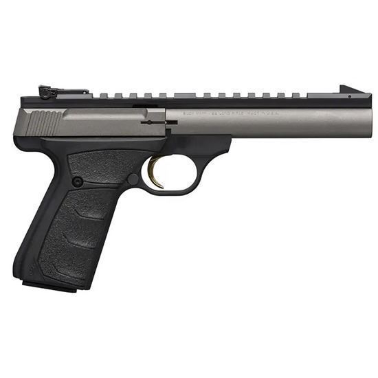 Blowback operated, single-action rimfire pistol with bull barrel. Features the protection of a Tungsten Cerakote finish on the barrel and slide. Full-length top Picatinny rail. Pro-Target adjustable rear sight.