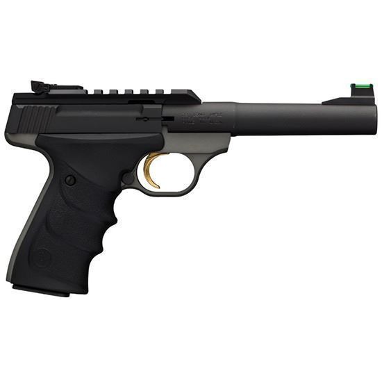Soft nitrile rubber Ultragrip RX (URX) grips with finger grooves, top 1913 Picatinny rail optic base, round tapered bull barrel, Pro-Target adjustable rear sight and TRUGLO/Marble Arms fiber-optic front sight.