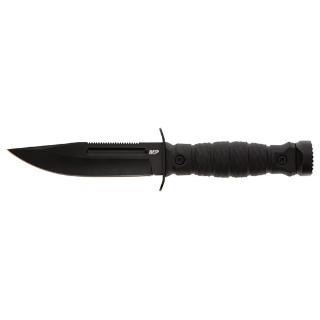 Other Features: Rubberized polymer handle, Full tang, Rigid synthetic tactical sheath, Sawback edge