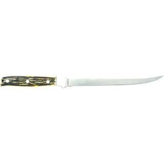 Uncle Henry Large Fillet Knife Full Tang Fixed Blade, 7Cr17 High Carbon Stainless Steel Fillet Blade, Staglon Handle Slabs with Nickel Silver Bolsters, Brass Pins, Lanyard Hole, and Brown Leather Belt Sheath