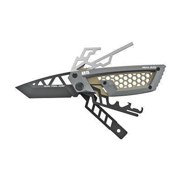Real Avid, AR15 Tool, Multi-Tool, Black/Tan Finish, Stainless Steel, Includes Tan Nylon Sheath