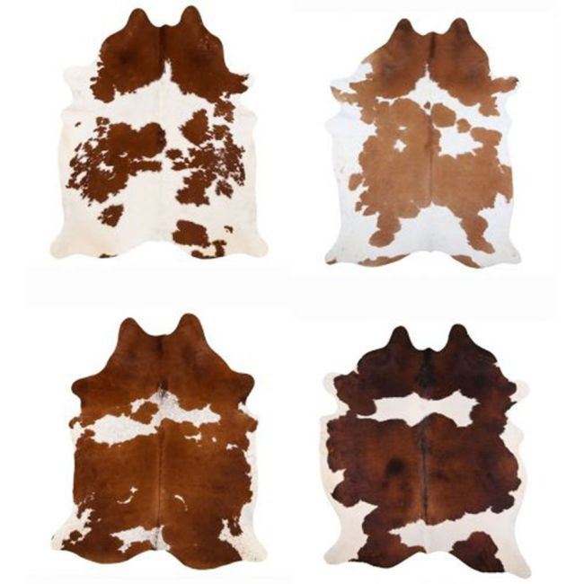 LG/XL Brazilian Brown and White hair on cowhide rug. Measures approx. 42.5 - 50 square feet. **REAL COWHIDE- Color Tones & Patterns of cowhides can/will vary** Some cowhides may have scars or brand marks.
