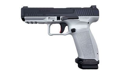 CANIK, TP9, METE SFT, Striker Fired, Semi-automatic, Polymer Frame Pistol, Full Size, 9MM, 4.47" Barrel, Black Slide, White Frame, 3 Dot White Sights, Flared Magwell, Holster Fit and Lock, Optics Ready, 2 Magazines, (1)-18 Round and (1)-20 Round