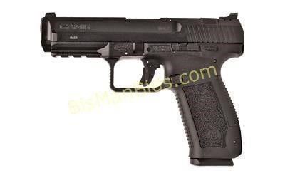 The CANIK TP9SA MOD2 features a loaded chamber indicator, match grade barrel, reversible magazine release and accessory rail.