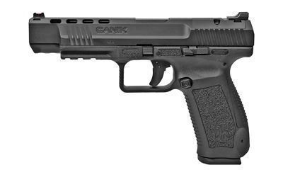 The CANIK TP9SFX features a loaded chamber indicator, match grade barrel, reversible magazine release and accessory rail.