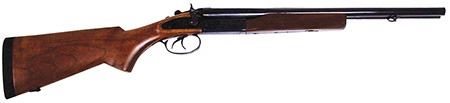 side by side barrels and a 3" chamber set in an oil-rubbed hardwood stock