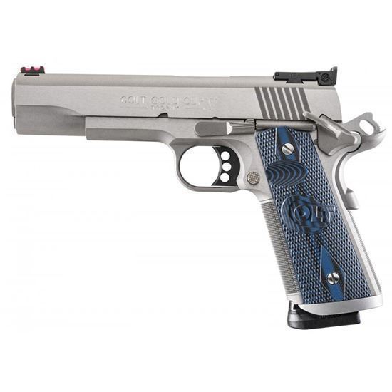 The Colt Gold Cup Trophy has been reborn as the ultimate choice for the modern competitor. True to its legacy, the redesigned Gold Cup starts with the features that seasoned shooters want: competition ergonomics, adjustable rear sight, and those stunning Colt competition-blue G10 grips. On top of that, the Gold Cup Trophy adds 25LPI checkering on the front and rear of the frame and an extended magwell for lightning-fast reloads. For the weekend warrior or the full-time competitive shooter, there really is no other option. The Colt Gold Cup Trophy is now available in 38 Super for maximum speed and accuracy on the competitive range.