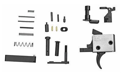 Enhanced with a 3.5lb Single Stage Curved Trigger, this kit is a great addition to your AR15 build. From amateur gun builder to seasoned expert gun smith, this lower parts kit is for you. NOTE: Grip NOT included. Kit Contains 3.5lb Single Stage Trigger 1.Bolt Catch 2. Bolt Catch Plunger 3. Bolt Catch Spring 4. Bolt Catch Roll Pin 5. Mag Release 6. Mag Release Button 7. Mag Release Spring 8. Buffer Retainer Spring 9. Safety 10. Buffer Retainer 11. Safety Detent Spring 12. Safety Detent 13. Trigger Guard 14. Trigger Guard Roll Pin 15. Takedown Detent Springs 16. Takedown Detents 17. Takedown Pins. All parts meet or exceed MIL SPEC