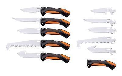 This is the folding knife set every hunter needs. It includes almost everything necessary for field dressing large and small game, all in one convenient package. There are five sturdy blades in the set, each with a specific purpose and use. The razor sharp blades are made from 4116 stainless steel and are ready for virtually any task. The knife comes with a double textured, ergonomically designed grip, and the set comes prepacked in a sturdy case.