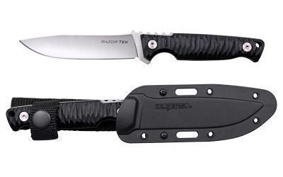 Cold Steel, Razor Tek, Fixed Blade Knife, 4" Clip Point, Black GFN Handle, 4116 Stainless Steel, Satin Silver Blade, Secure-Ex Sheath