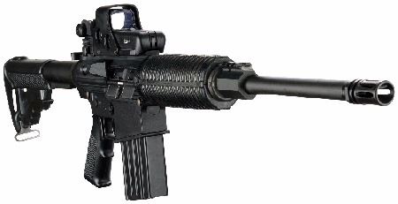 36.5", rugged military carbine features and .308 firepower. The 16" heavy