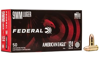 Federal, American Eagle, 9MM, 124 Grain, Full Metal Jacket, 50 Round Box