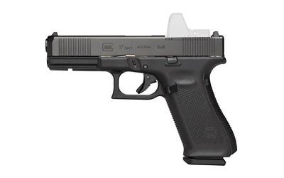 Glock, 17 Gen5 M.O.S., Striker Fired, Full Size, 9MM, 4.49" Marksman Barrel, Polymer Frame, Matte Finish, Fixed Sights, 10Rd, 3 Magazines, Front Serrations, Ambidextrous Slide Stop Lever, Flared Mag Well, nDLC Finished Slide and Barrel, No Finger Grooves