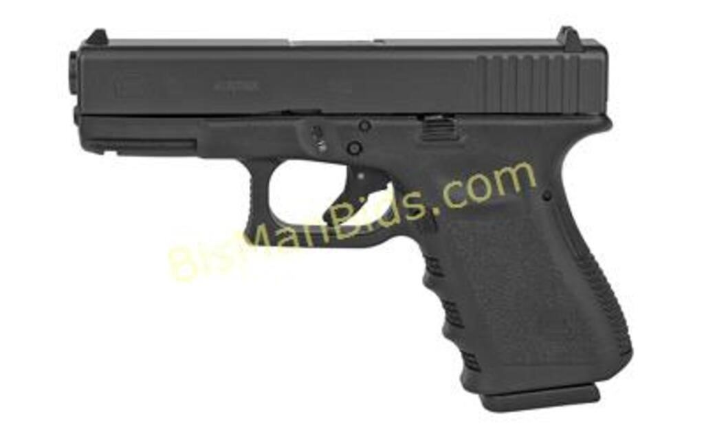 Glock, 19 Gen3, Striker Fired, Semi-automatic, Polymer Frame Pistol, Compact, 9MM, 4.02" Barrel, Matte Finish, Black, Fixed Sights, 15 Rounds, 2 Magazines