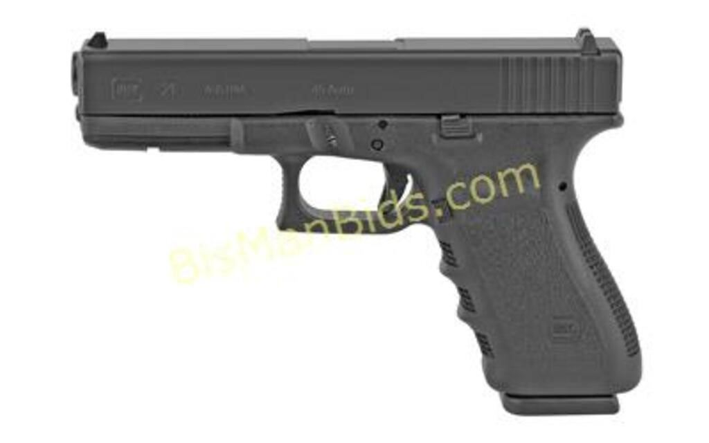 Glock, 21SF Gen3, Striker Fired, Semi-automatic, Polymer Frame Pistol, Full Size, 45 ACP, 4.61" Barrel, Matte Finish, Black, Fixed Sights, 10 Rounds, 2 Magazines