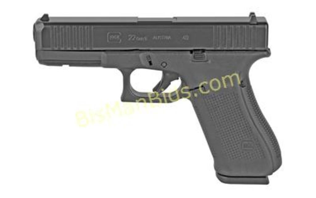 Glock, 22 Gen5, Striker Fired, Full Size, 40S& W, 4.49" Marksman Barrel, Polymer Frame, Matte Finish, Fixed Sights, 15Rd, 3 Magazines, Ambidextrous Slide Stop Lever, Flared Mag Well, nDLC Finished Slide and Barrel, No Finger Grooves