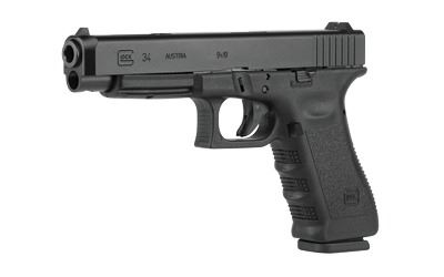 Glock, 34 Longslide Gen 5, Safe Action, Modular Optic System, 9MM, 5.31" Marksman Barrel, Polymer Frame, Adjustable Sights, 17Rd, Prac/Tac, 3 Orange Follower Magazines, Glock OEM Rail, Ambidextrous Slide Stop Lever, Flared Mag Well, nDLC Finished Slide and Barrel, No Finger Grooves
