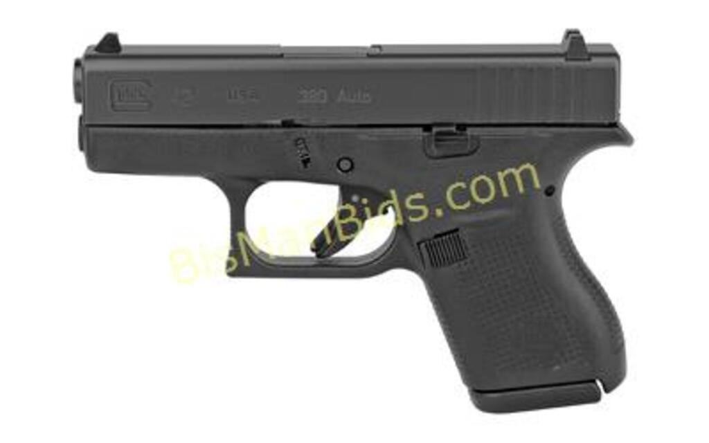 Glock, 42, Striker Fired, Semi-automatic, Polymer Frame Pistol, Sub-Compact, 380 ACP, 3.25" Barrel, Matte Finish, Black, No Finger Grooves, Fixed Sights, 6 Rounds, 2 Magazines