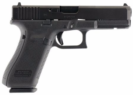 his Glock Gen5 model has fixed sights and a 17-round capacity.