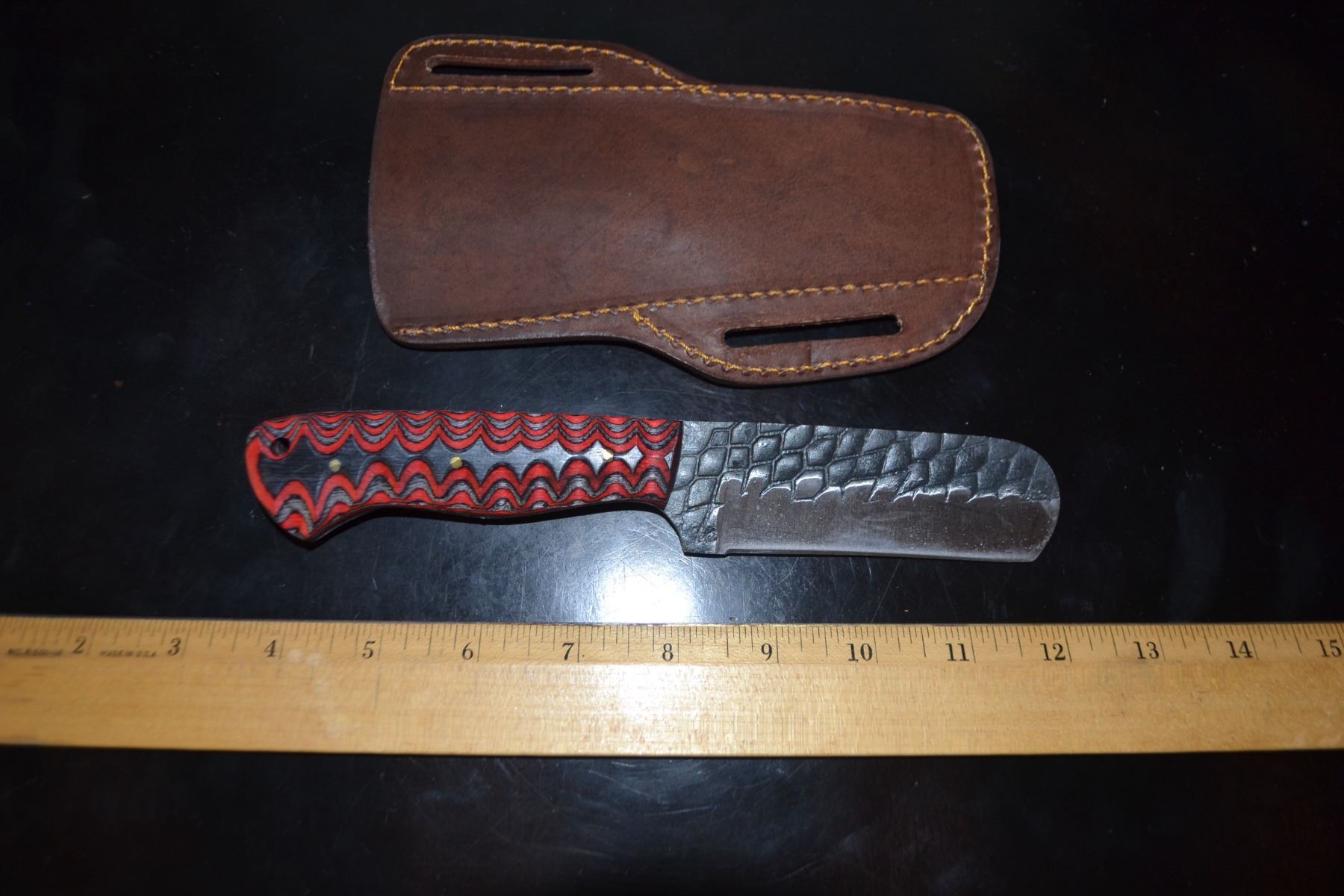 Hand Forged Damascus Steele Knife w/ Leather Sheath
