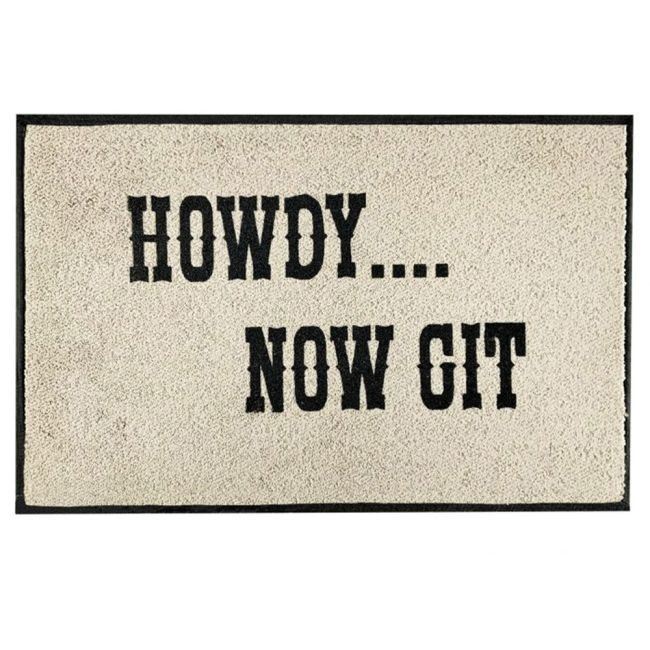 Welcome guests with a dash of Western charm and a hearty "Howdy... Now Git" thanks to this eye-catching floor mat!