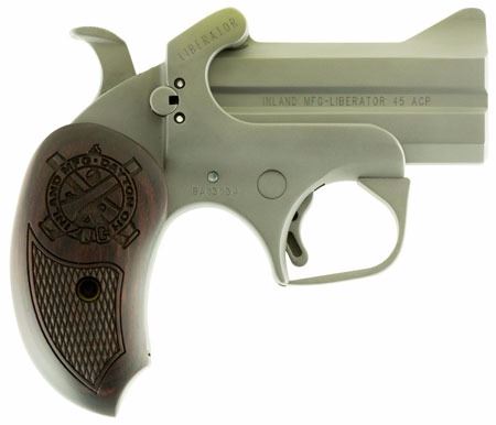 Inland's Liberator Derringer is chambered in .45 ACP with a 3" over/under