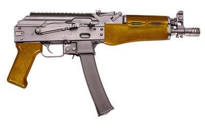 Kalashnikov USA, KP-9, AK Pistol, Semi-automatic, 9MM, 9.25" Barrel, Steel, Black, Amber Wood Pistol Grip and Forend, Adjustable Sights, 30 Rounds