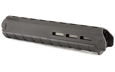 The Magpul MOE M-LOK Hand Guard (Magpul Original Equipment) for AR15/M16 rifles with rifle-length gas systems combines the light weight of a standard hand guard with modular flexibility. Designed with versatility in mind, M-LOK slots at the two, six, and ten o'clock positions allow the attachment of optional 1913 Picatinny rail sections and other M-LOK accessories for the direct mounting of tactical lights, slings, grips, etc. Reinforced, heat-resistant polymer construction provides operational durability without the weight and expense of an aluminum rail hand guard. Front extensions and lower lip provides additional operator protection from hot front sight assembly. Made in U.S.A.