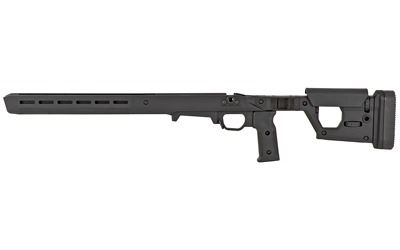 The Magpul Pro 700L Rifle Chassis is an uncompromising, full featured precision rifle chassis for long action Remington 700 and Remington 700-footprint rifles. The Pro 700L combines innovative engineering, precision machining, Mil-Spec quality finishes, and an extensive list of purposeful design features with complete adjustability to provide demanding end users with the most comprehensive available precision rifle platform solution for true out of the box performance. Based on a fully machined aluminum skeleton and clad in Magpul polymer for environmental comfort, noise mitigation, and ergonomics, the Pro 700L is also fully ambidextrous. Capable of fitting both right and left-handed actions with the simple swap of a bolt-cutout plate, and includes a reversible cheek riser and a reversible hinge on the folding version.
