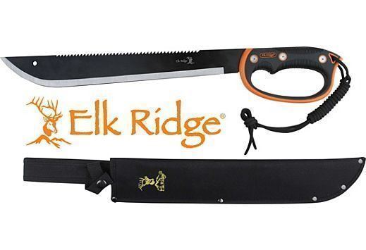 SPECIAL FEATURES: Machete, Full Tang Construction, Reverse Serrated Blade, Orange and Blade Injection Molded Handle with Lanyard and Hand Guard, Includes Nylon Sheath.