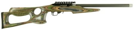 semi-automatic rifle. This firearm features a forest camo stock, a 17"