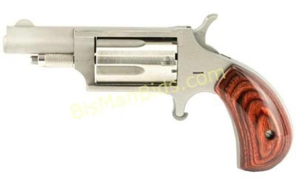 North American Arms, Mini Revolver, Single Action, Revolver, 22LR/22 WMR, 1.625" Barrel, Stainless Steel, Silver, Wood Grips, Fixed Sights, 5 Rounds