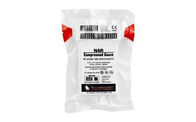 North American Rescue's Compressed Gauze is an ultra-compact roll of sterile, high quality 100% cotton gauze that utilizes a unique crinkle weave that has excellent fluid absorption. It is a 6-ply, 4.5" x 4.1 yd. gauze with finished edges to reduce loose ends or lint. The gauze is indicated for the treatment of bleeding and the dressing and bandaging of wounds. NAR's Compressed Gauze features a proprietary packaging process that ensures the most consistent, low-cube package on the market. The package is a rugged and durable vacuum sealed container with easy-to-open tear notches. The ultra-compact storage size expands once opened to cover larger wound areas. NAR's Compressed Gauze is an essential item for any medical kit and can be used to control hemorrhage in conjunction with a compression bandage, used as backing gauze for hemostatic dressings or for wound bandaging.