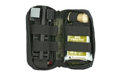 North American Rescue, M-FAK Mini First Aid Kit, Contains: 1 C-A-T Tourniquet, 1 ETD 4" Flat, 1 Gauze S-Rolled, 1 HyFin Compact Chest Seal Twin Pack, 1 Pair Nitrile Gloves in Large, 500 Denier Nylon Bag, Black Finish