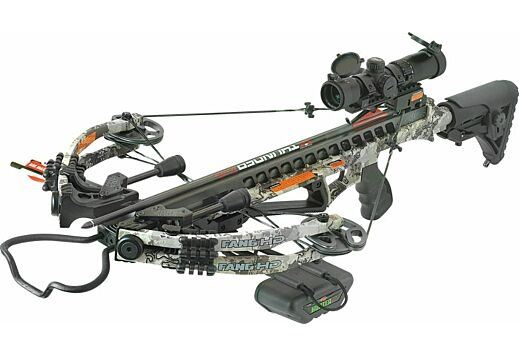 -Illuminated scope, quiver, three 22" carbon arrows w/ bullet points, cocking rope & rail lube