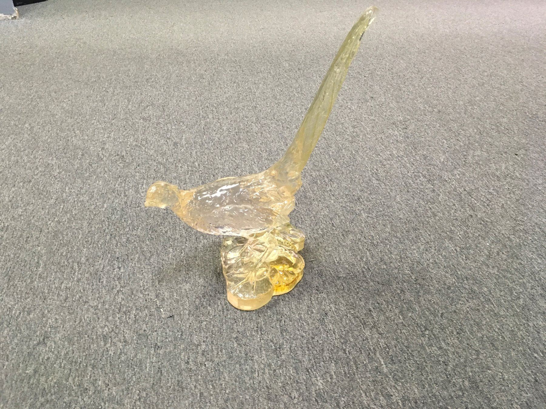 Resin pheasant statue. Life size pheasant. There is some discoloration believed to be due to being in the sun. The tip of the tail has been broken, but was sanded down and refinished.