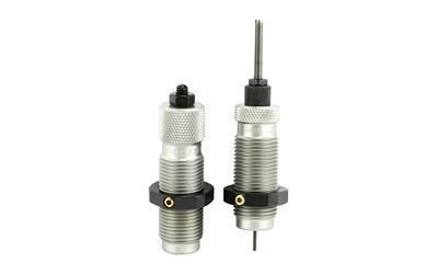 This two-die set is for bottleneck type cases used in tight-chambering semi-automatic, pump or lever-action rifles. It consists of a Small Base Sizer with an Expander-Decapping Unit and Regular Seater Die with Seater Plug. The sizer resizes cases below SAAMI minimums, reducing the shoulder and body by a few thousandths. It also de-primes the case. The included Seater Die has a built-in roll crimper to secure the bullet at the same time it's seated. To seat bullets without crimping, simply unscrew the die until the crimp ring no longer engages the case mouth.